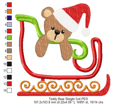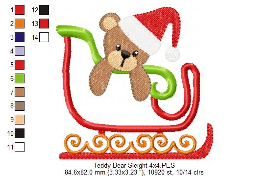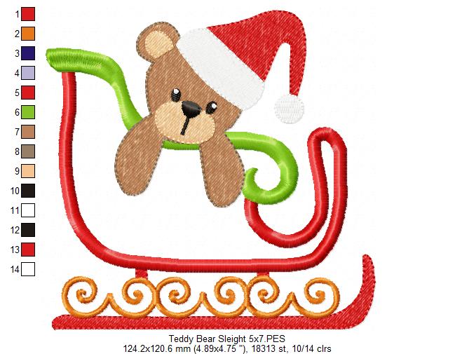 Christmas Teddy Bear in Sleigh - Applique