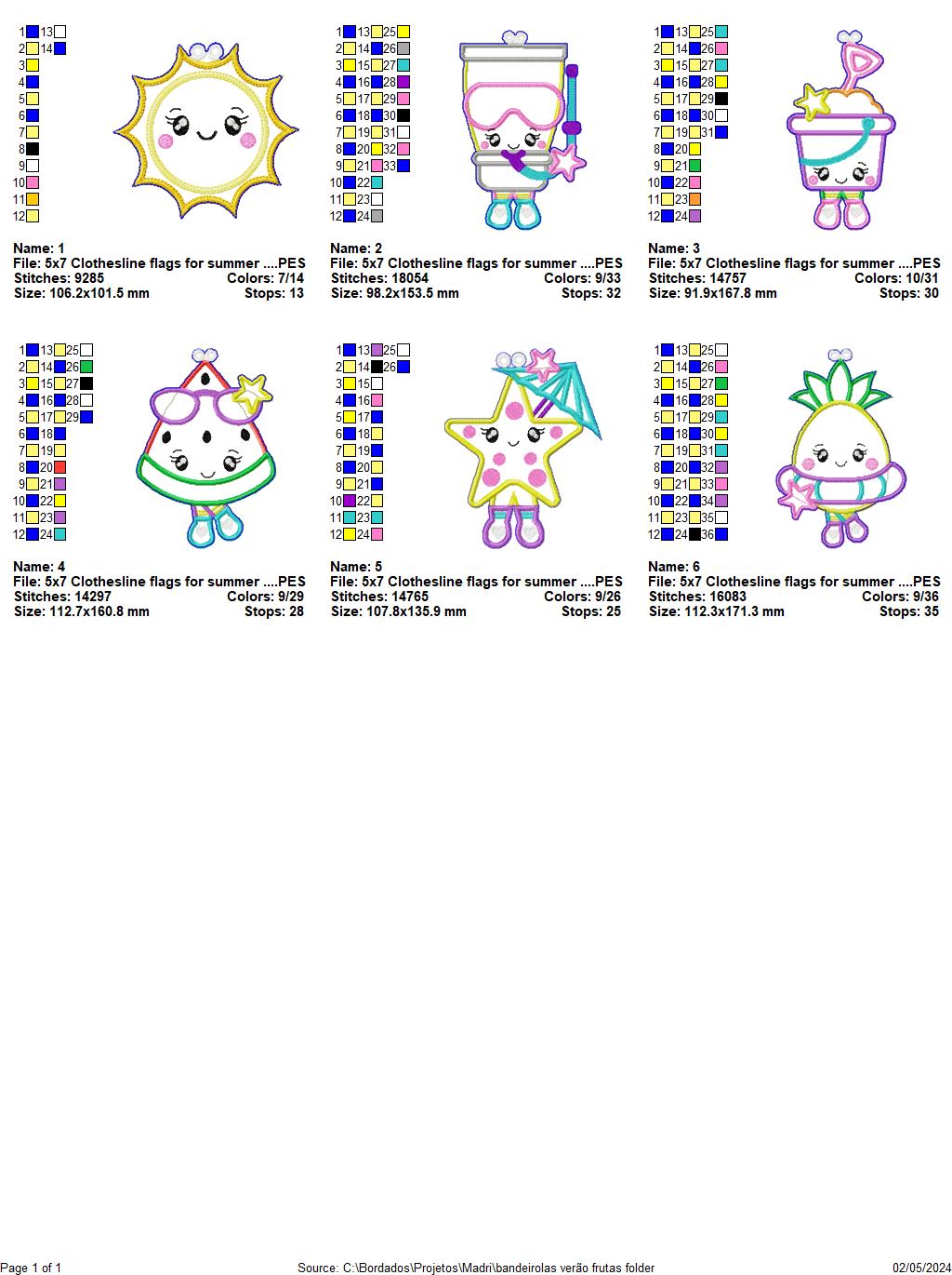 Clothesline Flags Summer - ITH Project - Machine Embroidery Design