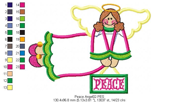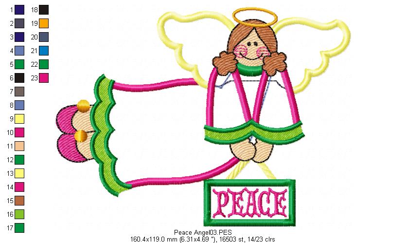 Country Peace Angel - Applique - Machine Embroidery Design