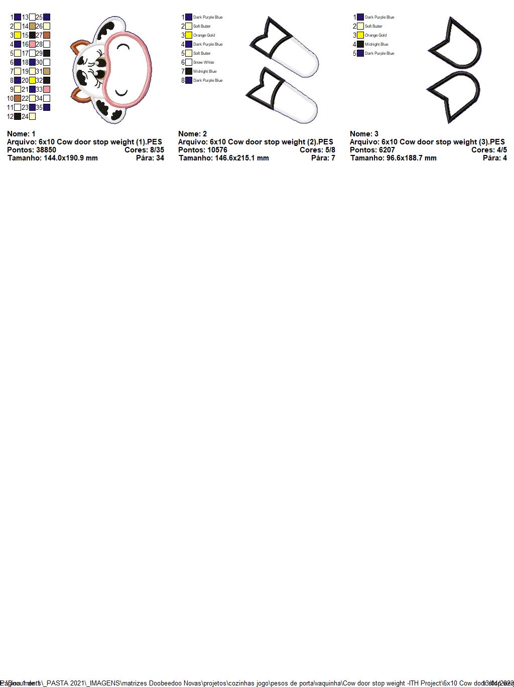 Cow Door Stop Weight - ITH Project - Machine Embroidery Design