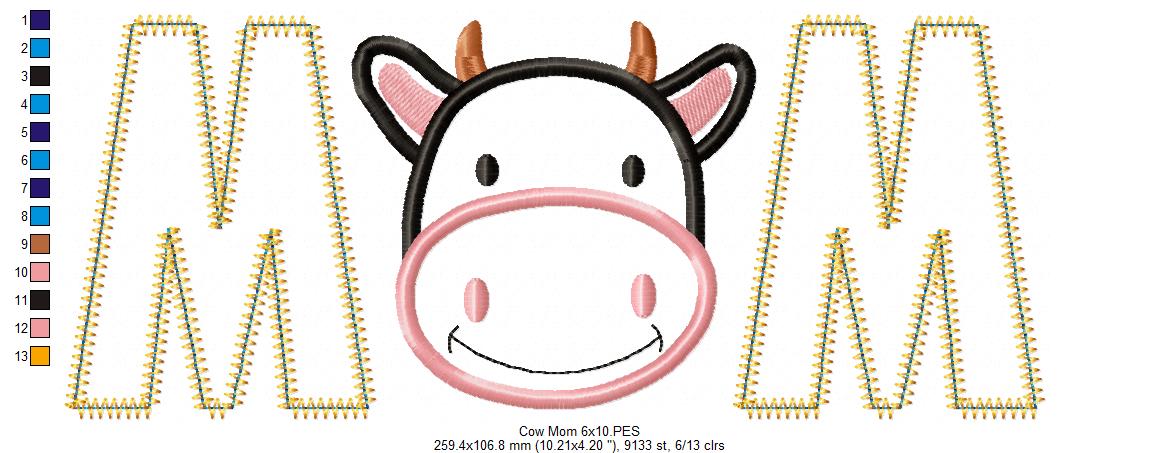 Cow Mom - Applique - Machine Embroidery Design
