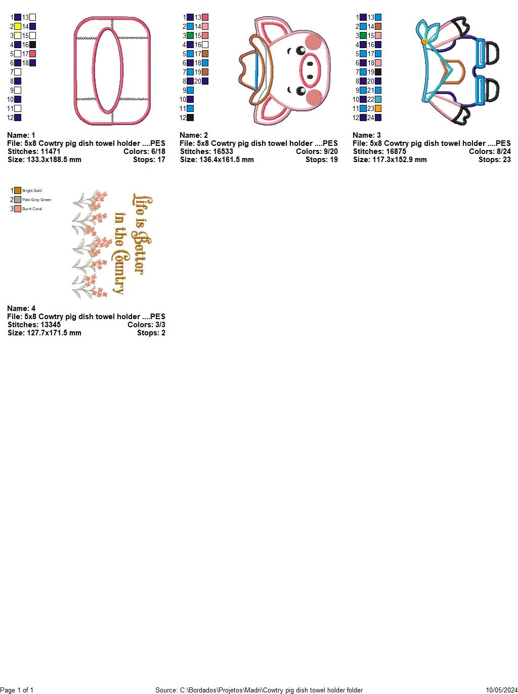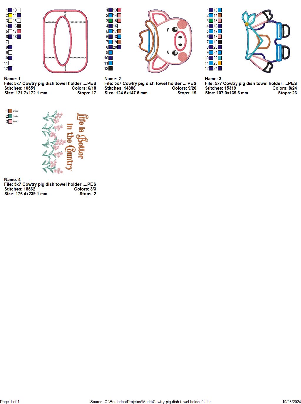 Country Pig Dish Towel Holder - ITH Project - Machine Embroidery Design