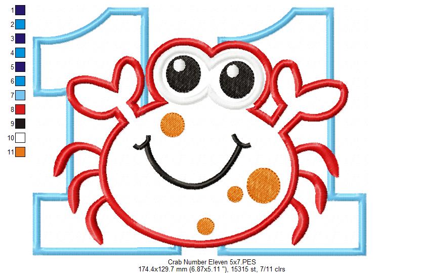 Crab Number Eleven 11 Elenth Birthday - Applique