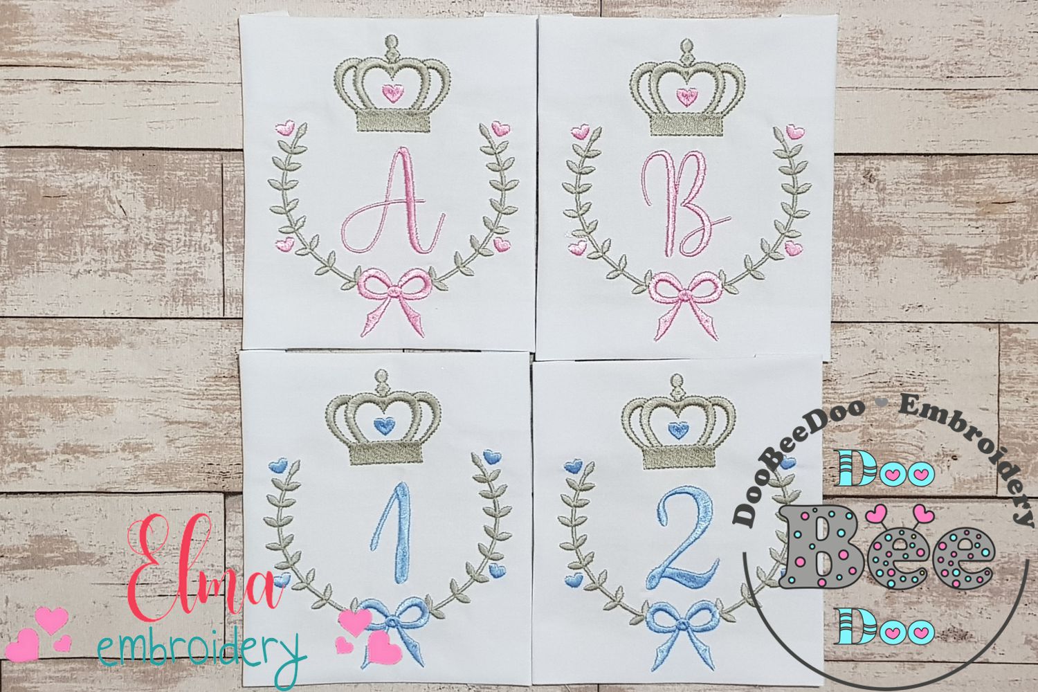 Crown, Frame and Bow Alphabet A-Z and Numbers 1-11 - Fill Stitch