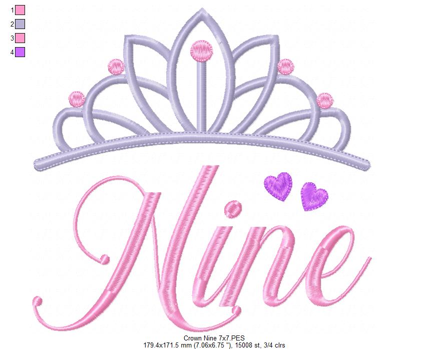 Crown Nine 9th Birthday Tiara - Fill Stitch
