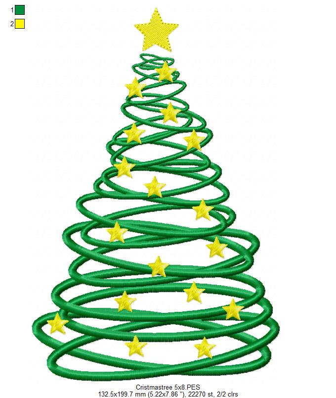 Curly Christmas Tree - Fill Stitch - Machine Embroidery Design