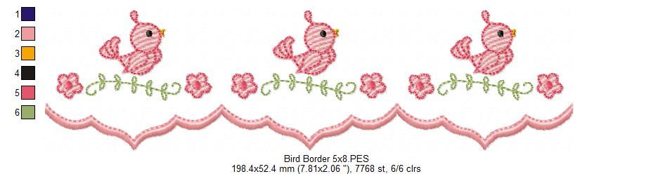 Cute Bird Delicate Border - ITH Project - Machine Embroidery Design