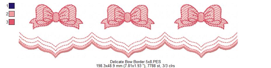 Cute Bow Delicate Border - Fill Stitch - Machine Embroidery Design