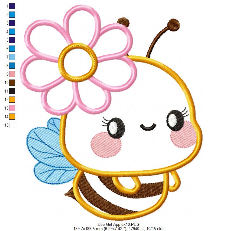 Cute Bumble Bee Girl - Applique - Machine Embroidery Design