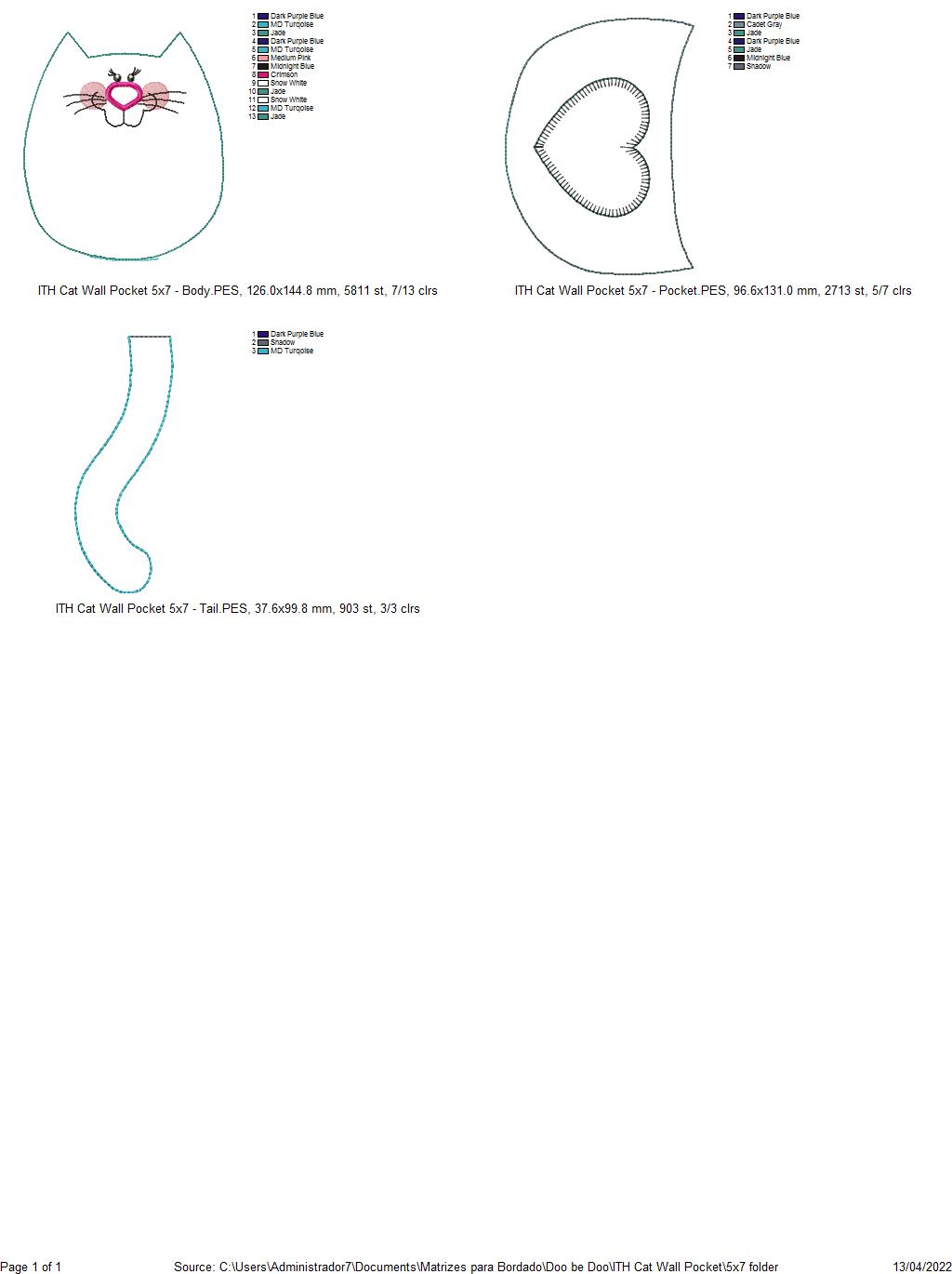Cute Cat Wall Pocket - ITH Project - Machine Embroidery Design