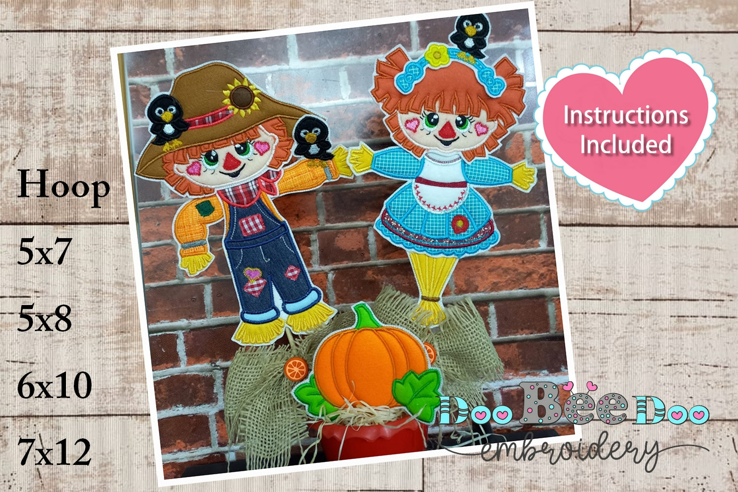Add a touch of whimsy to your home decor with our Cute Couple of Scarecrows Vase Ornament embroidery design. Perfect for any autumn-themed project, this instant download is sure to bring a smile to your face (and your stitching!).
