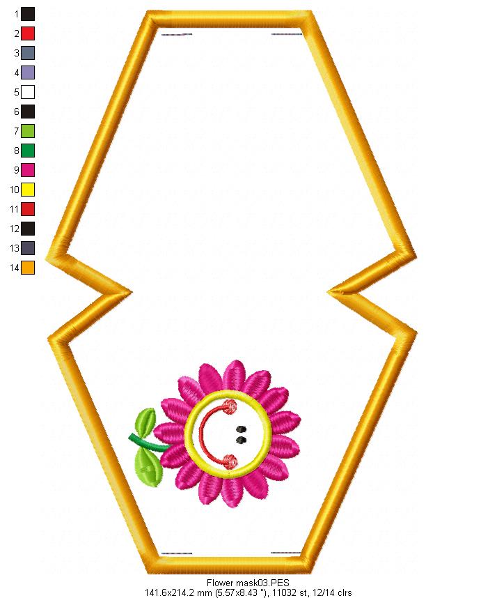 Cute Flower Face Mask - ITH Project - Machine Embroidery Design