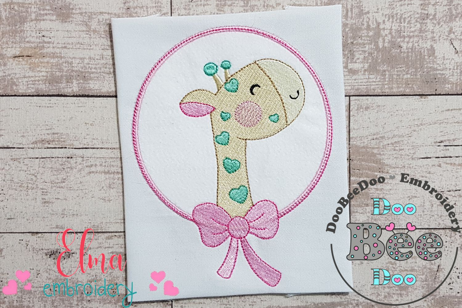 Cute Giraffe with Bow Frame - Applique