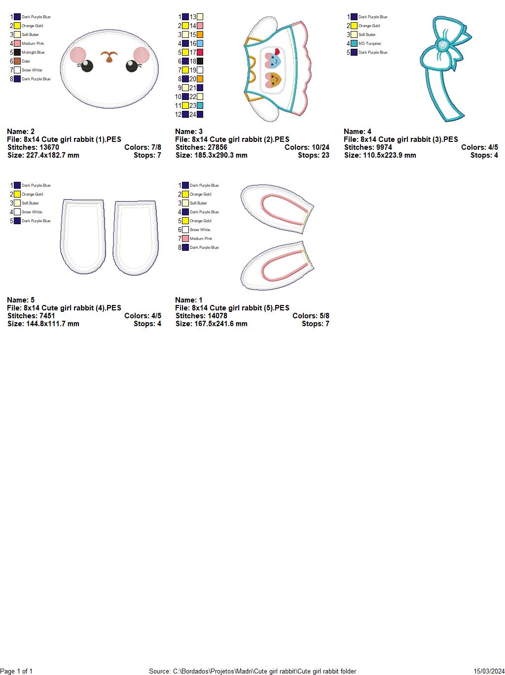 Cute Girl Rabbit - ITH Project - Machine Embroidery Design