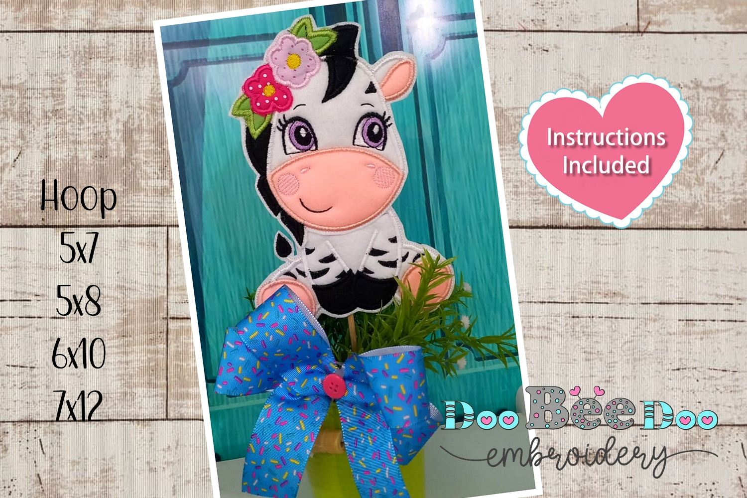 Cute Little Zebra with Flowers - ITH Project - Machine Embroidery Design