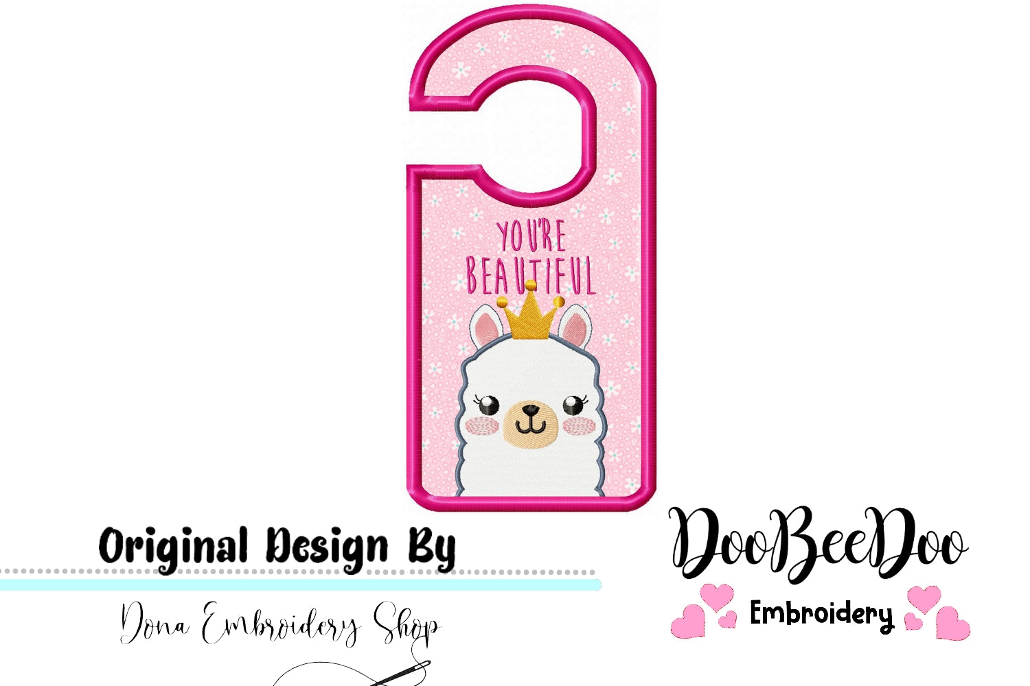 Transform your home decor with the adorable Cute Llama Door Hanger embroidery design. This machine embroidery project is perfect for adding a personalized touch to your door. Simply download and start stitching for an instant upgrade to your space!