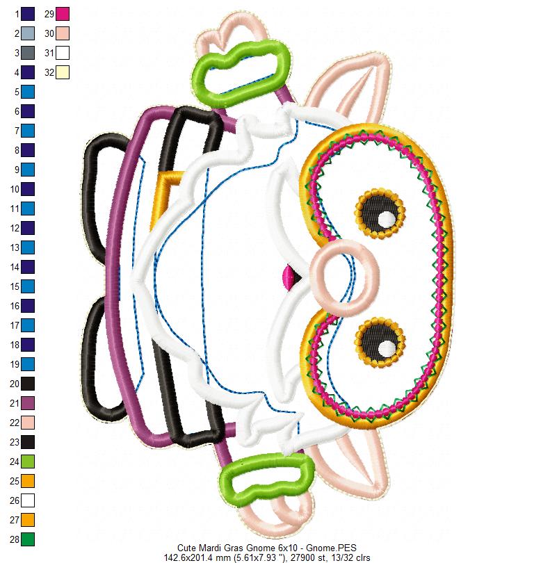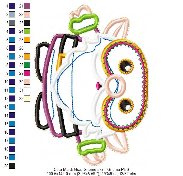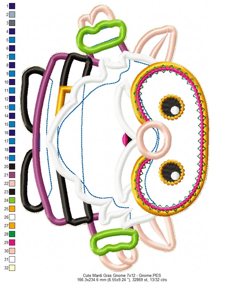 Cute Mardi Gras Gnome - ITH Project - Machine Embroidery Design