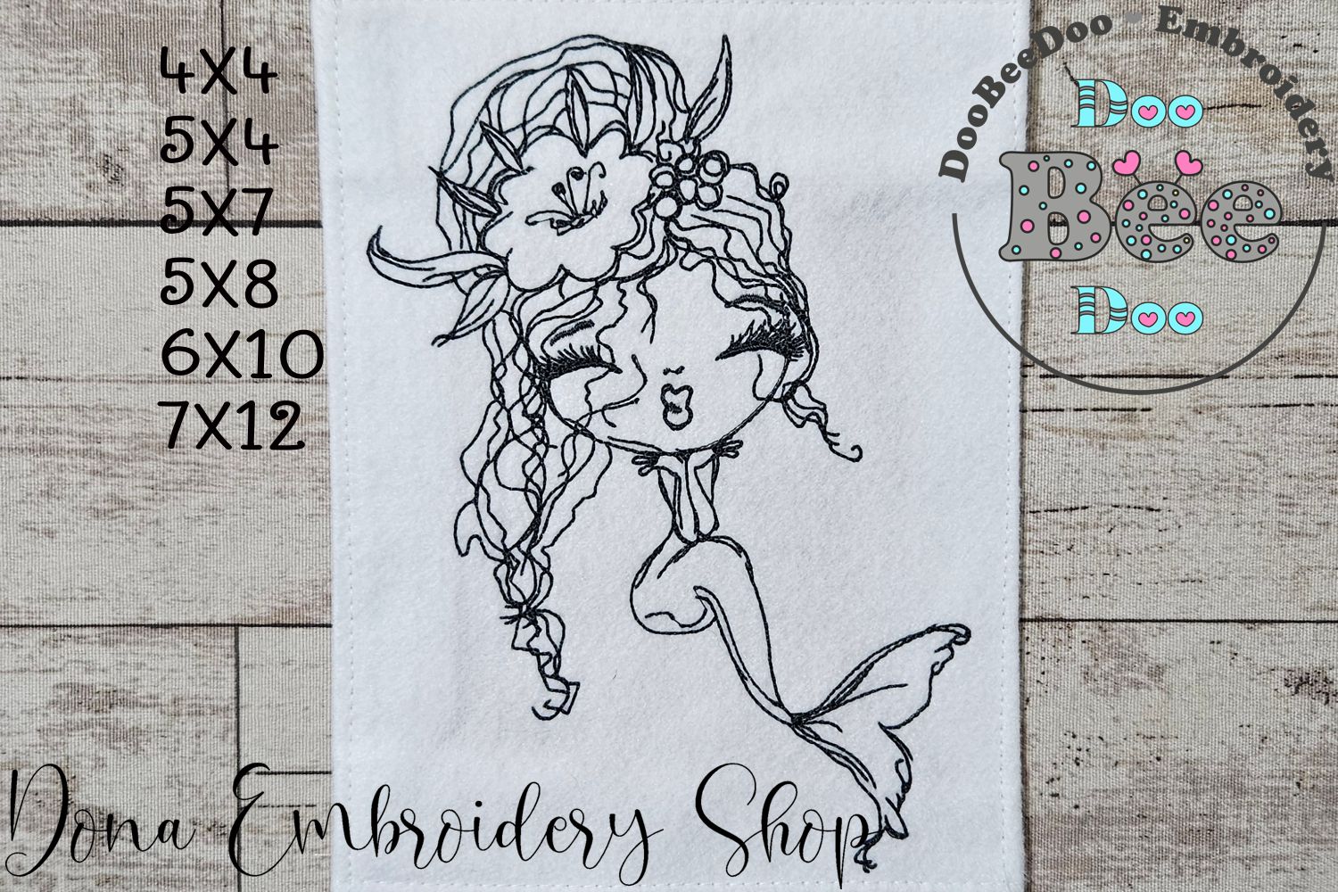 Cute Mermaid Kiss - Redwork - Machine Embroidery Design