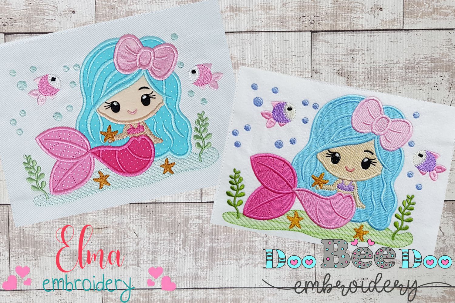 Cute Mermaid with Bow - Fill Stitch & Applique - Set of 2 designs