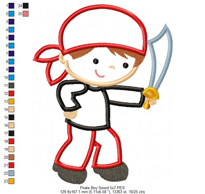 Cute Pirate Boy and Sword - Applique