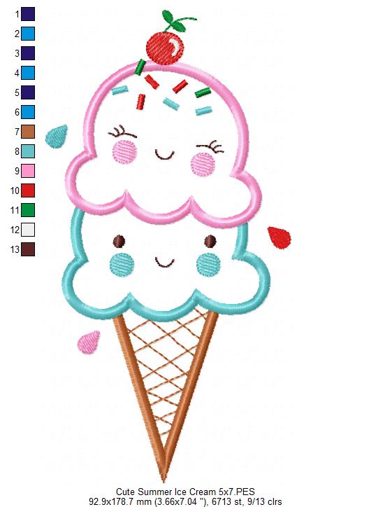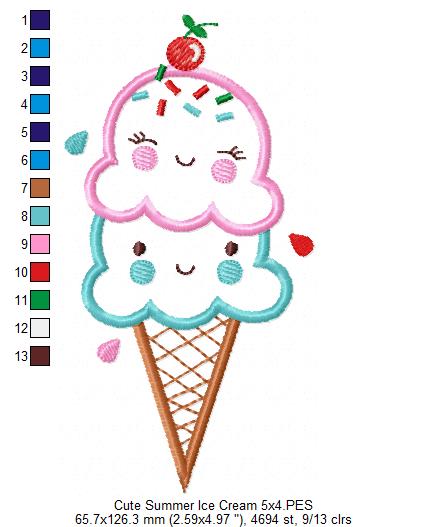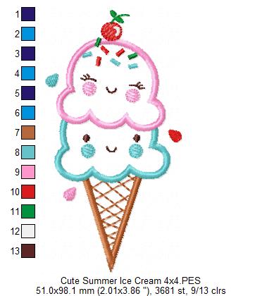 This summer, cool off with this CUTE and fun ice cream applique embroidery design! Available in 6 sizes, this machine embroidery design is easy to download and ready to make a statement! Enjoy a sweet treat while stitching this summery design!