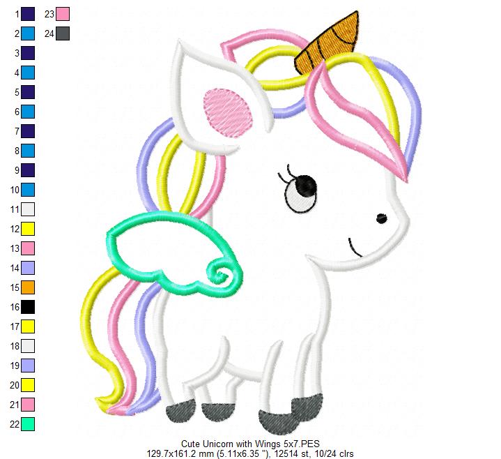 Cute Baby Unicorn - Applique - Machine Embroidery Design