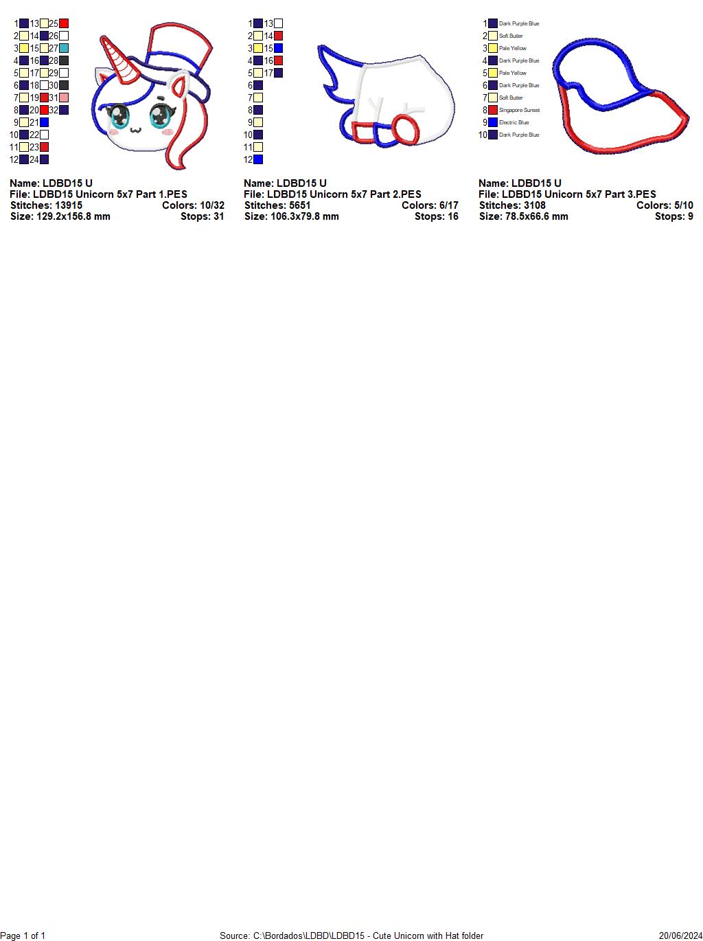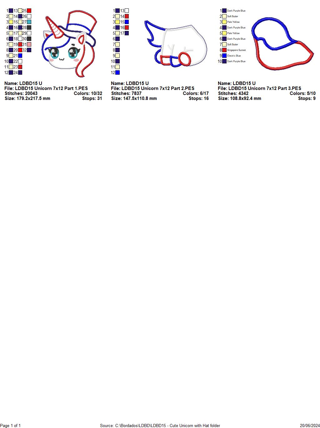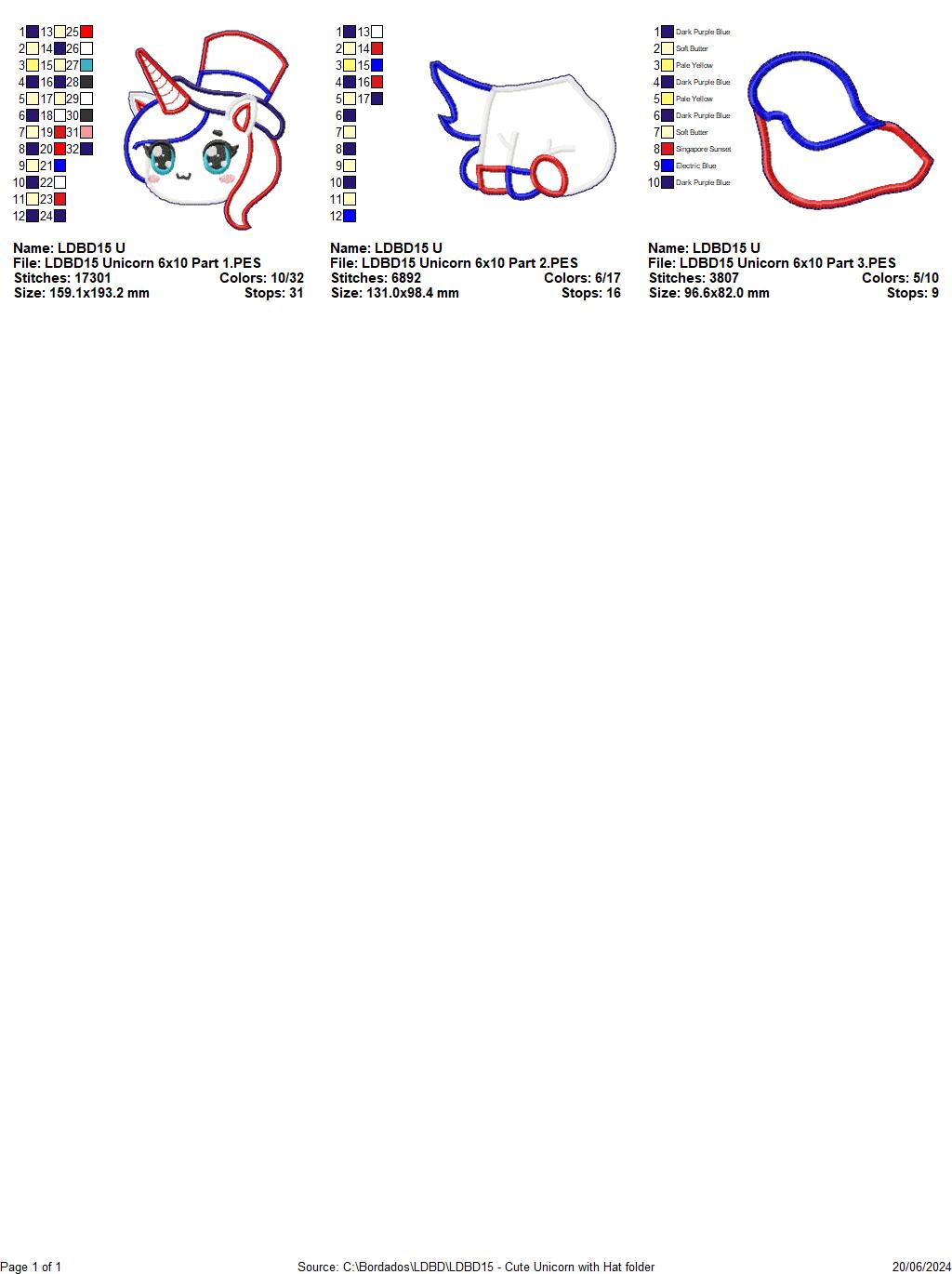 Cute Unicorn with Hat - ITH Project - Machine Embroidery Design