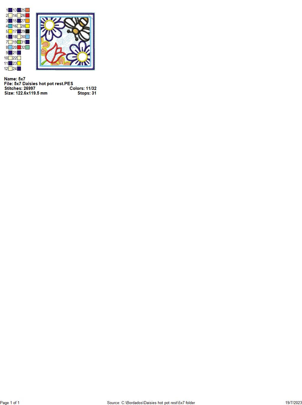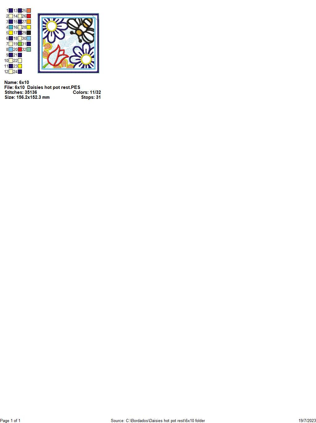 Daisies Hot Pot Rest - ITH Project - Machine Embroidery Design