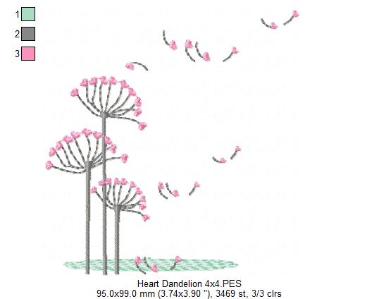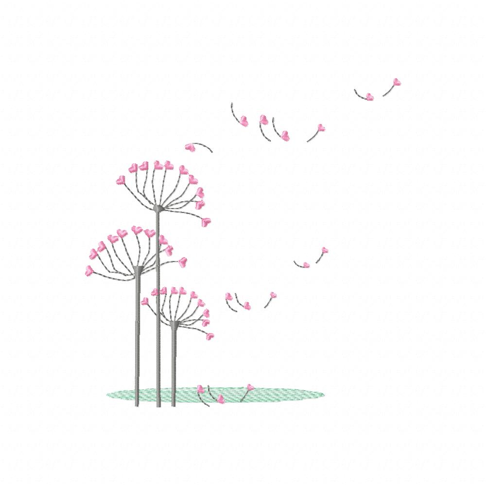 Dandelion Flower Flying - Fill Stitch - Machine Embroidery Design