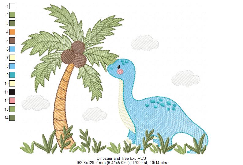 Dinosaur and Coconut Tree - Rippled Stitch - Machine Embroidery Design