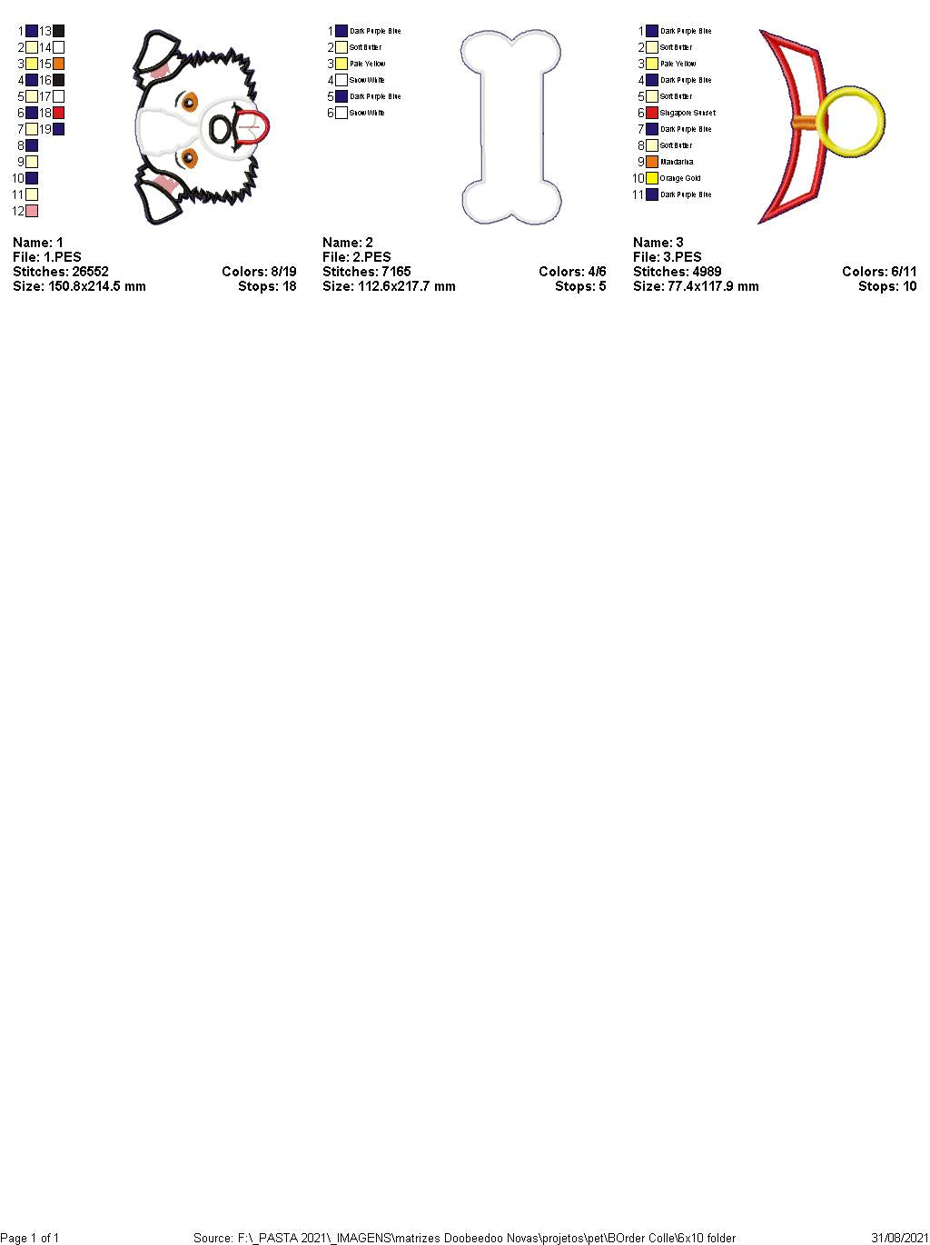 Dog Border Collie and Bone Door Ornament - ITH Project - Machine Embroidery Design