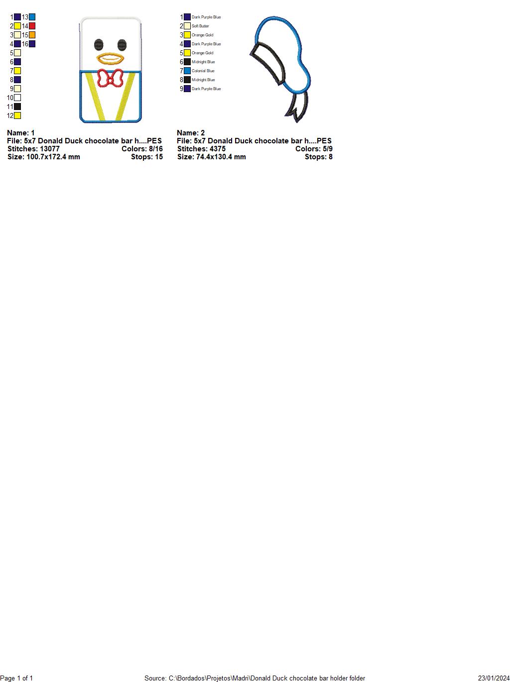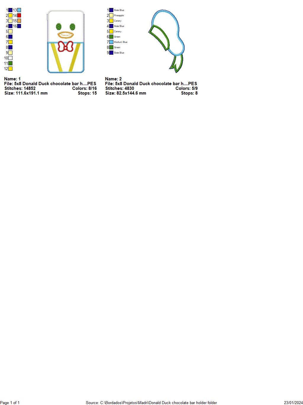 Donald Duck Chocolate Bar Holder - ITH Project - Machine Embroidery Design
