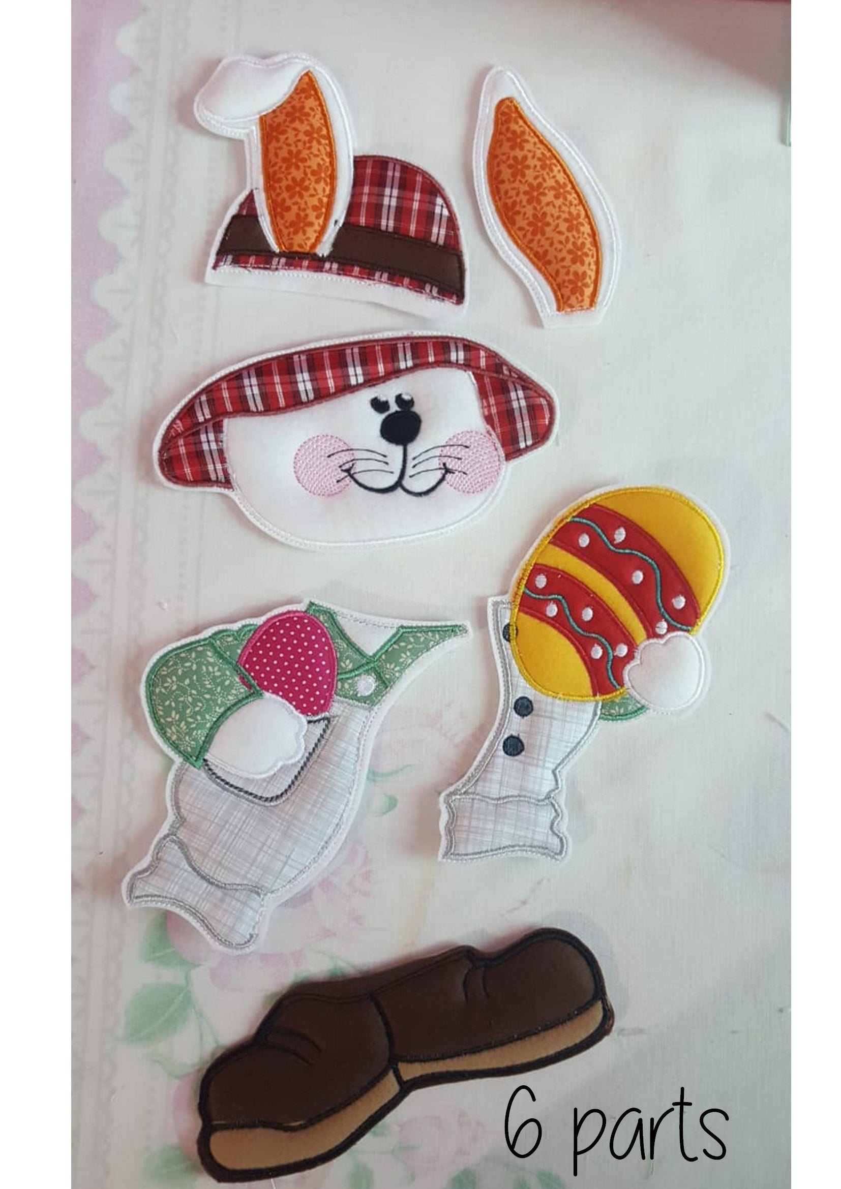 Easter Farmer Bunny Holding an Egg - Vase Ornament - ITH Project - Machine Embroidery Design
