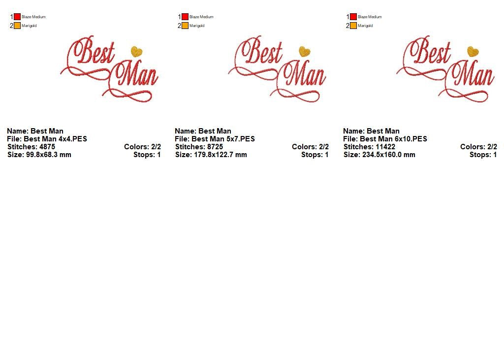 This is a bundle embroidery design and includes multiple wedding role styles, each available in several hoop sizes.
