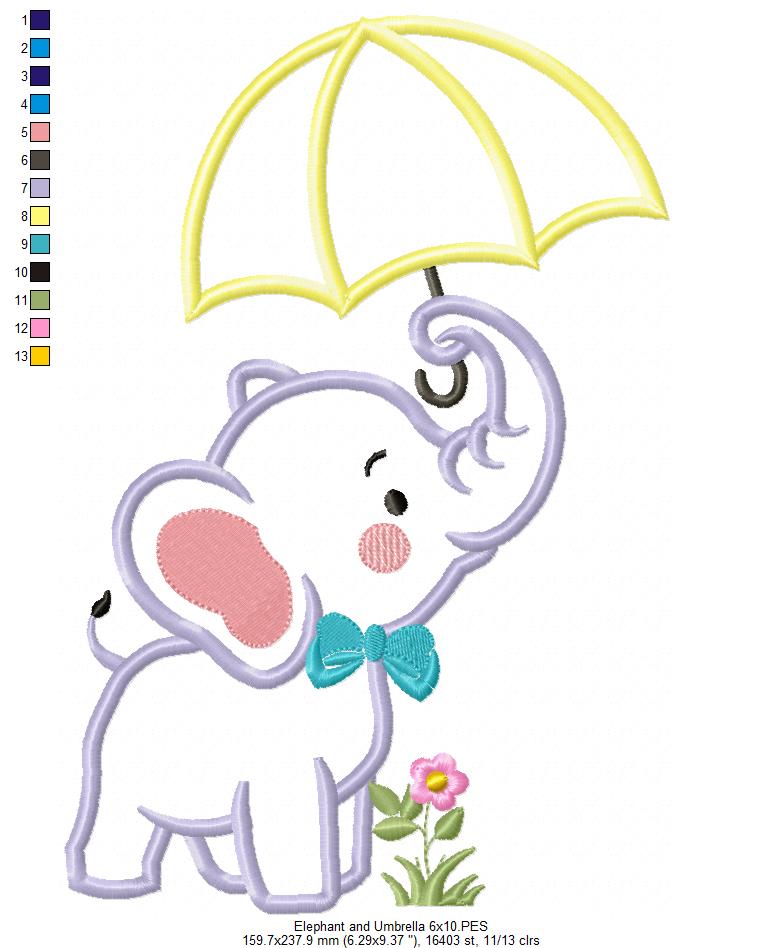 Elephant and Umbrella - Applique - Machine Embroidery Design