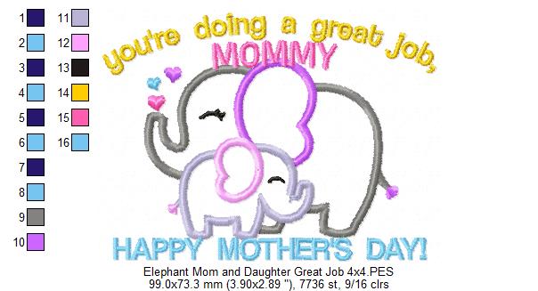 Elephants Happy Mother's Day - Applique - Machine Embroidery Design