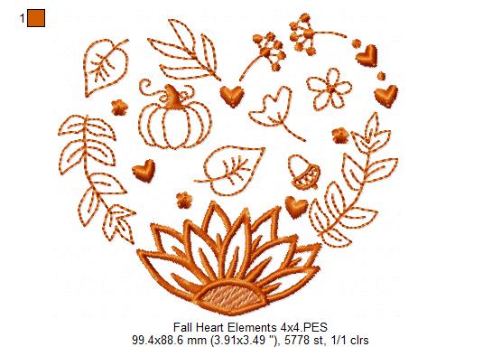 Fall Heart Elements - Fill Stitch Machine Embroidery Design