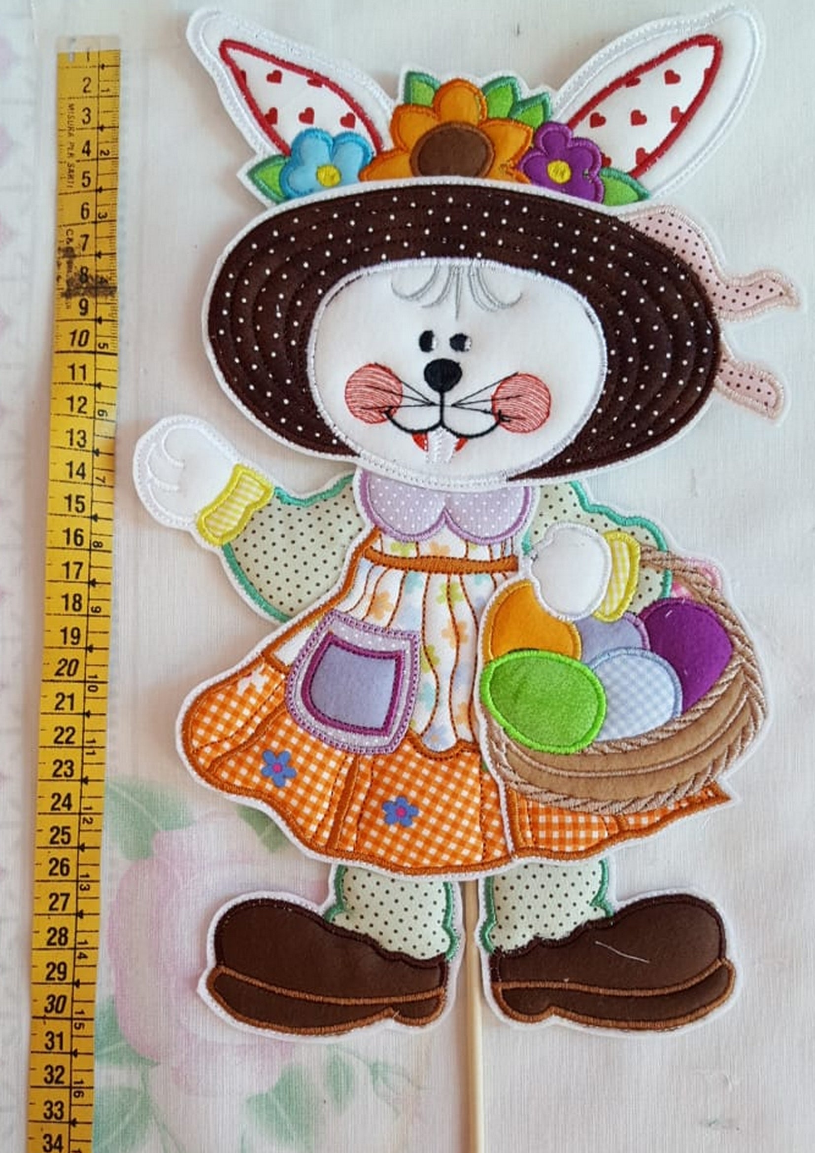 Farmer Bunny Girl Vase Ornament - ITH Project - Machine Embroidery Design