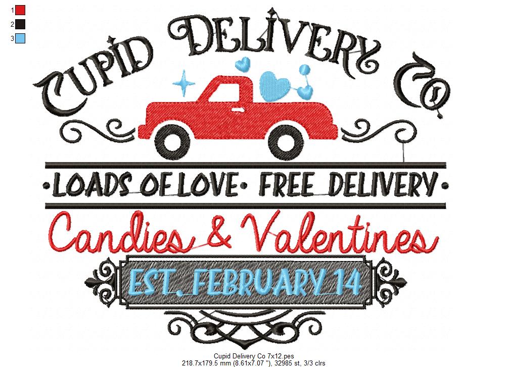 Farmhouse Valentines Sign Cupid Delivery Co. - Fill Stitch - Machine Embroidery Design