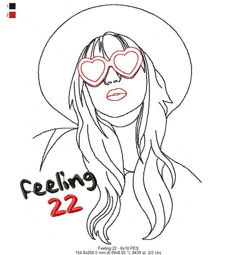 Feeling 22 - Taylor Swift - Satin Stitch - Machine Embroidery Design