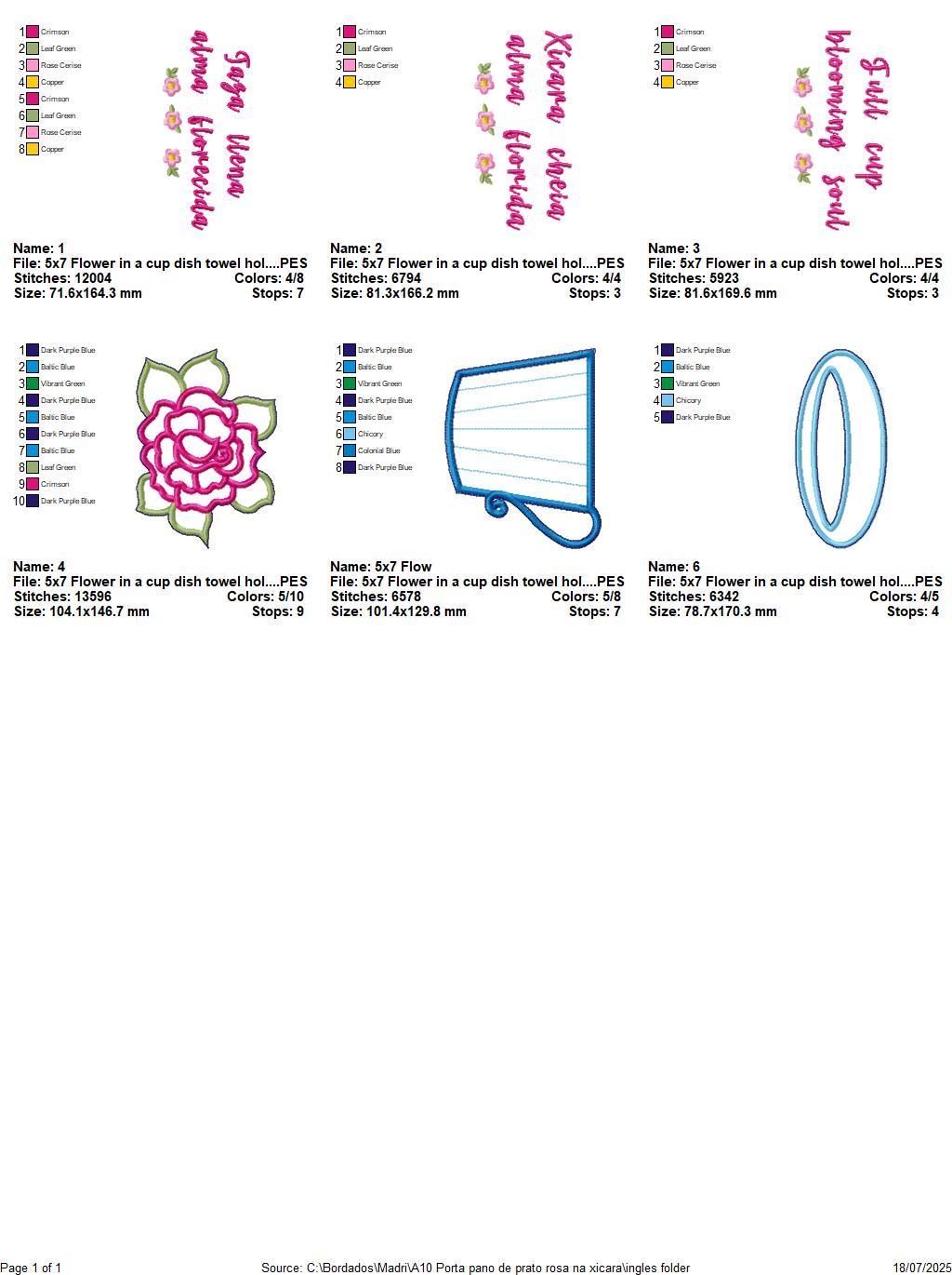 Floral Teacup Towel Holder β ITH Project β Machine Embroidery Design