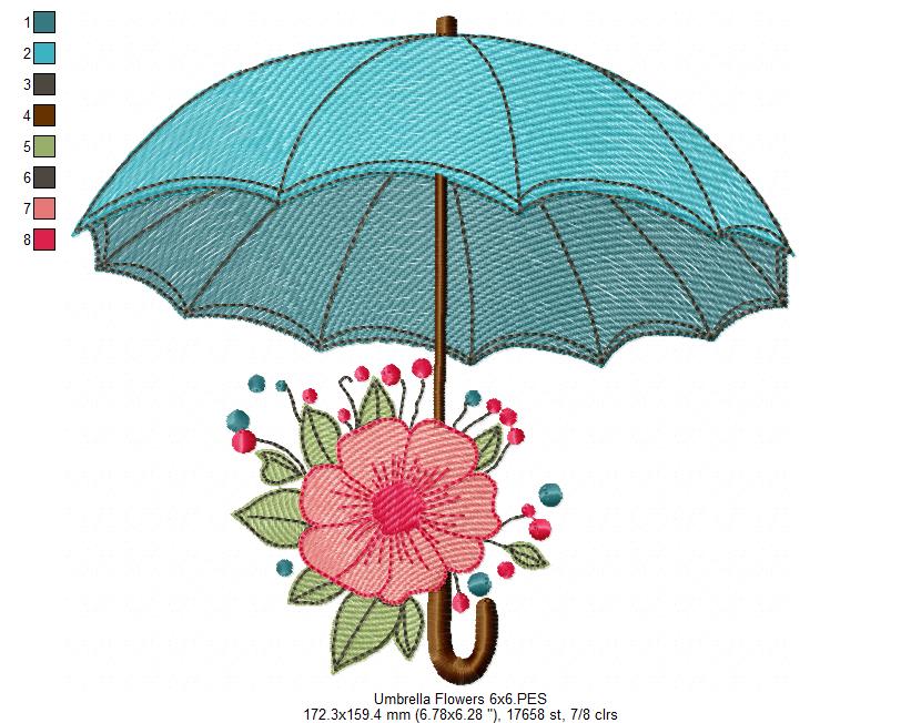 Add some whimsy to your embroidery projects with this Flower and Umbrella design - available in 4 sizes for endless creative possibilities. With an easy instant download, this machine embroidery design is perfect for adding a playful touch to any project. (Rain or shine, you'll be stitching in style!)