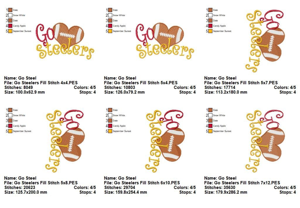 Go Steelers Football Heart – Fill Stitch – Machine Embroidery Design