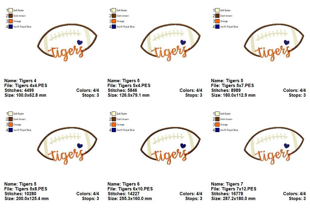 Football Tigers – Satin Stitch – Machine Embroidery Design