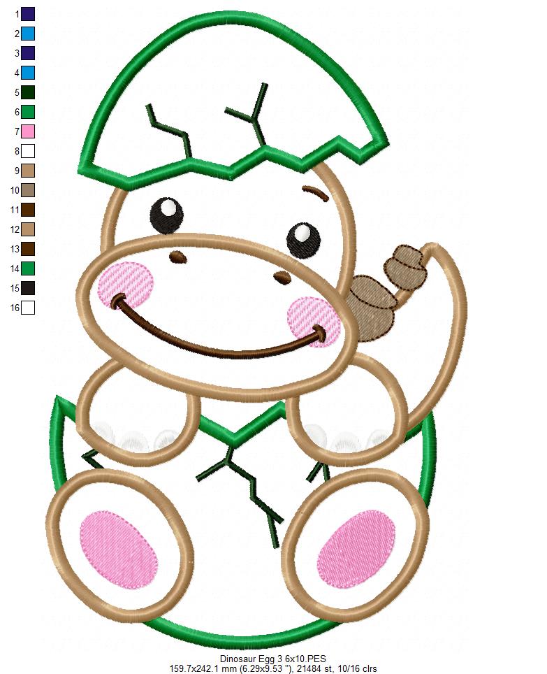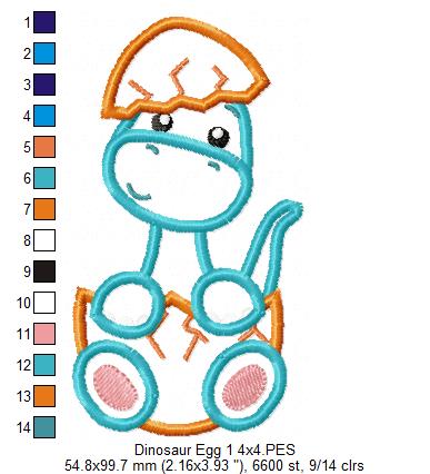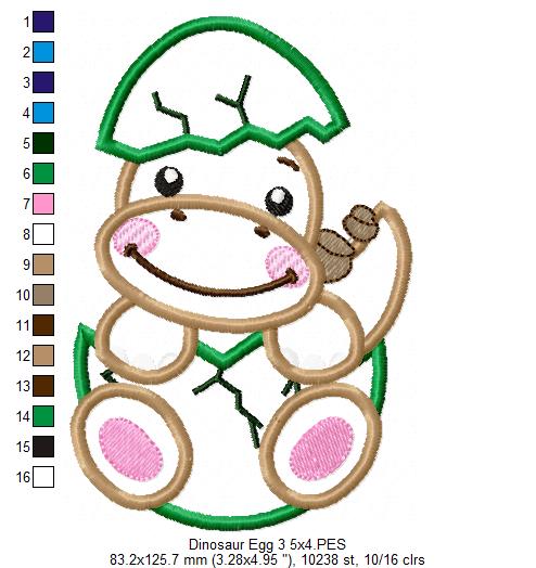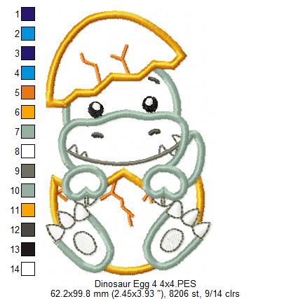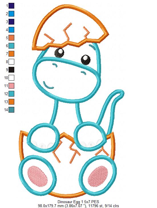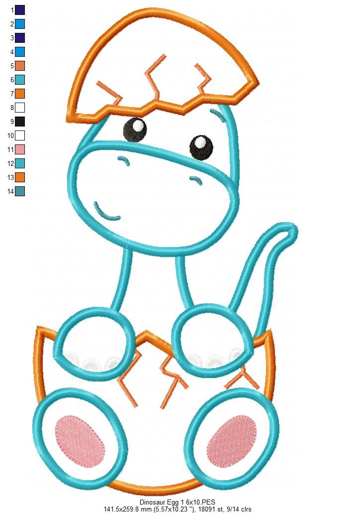 Four Baby Dinosaurs in the Egg - Applique - Set of 4 designs