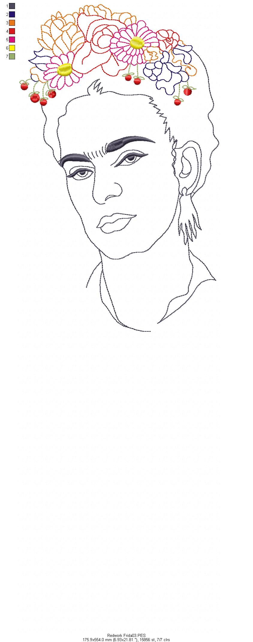 Frida Kahlo - Geek - Redwork Machine Embroidery Design