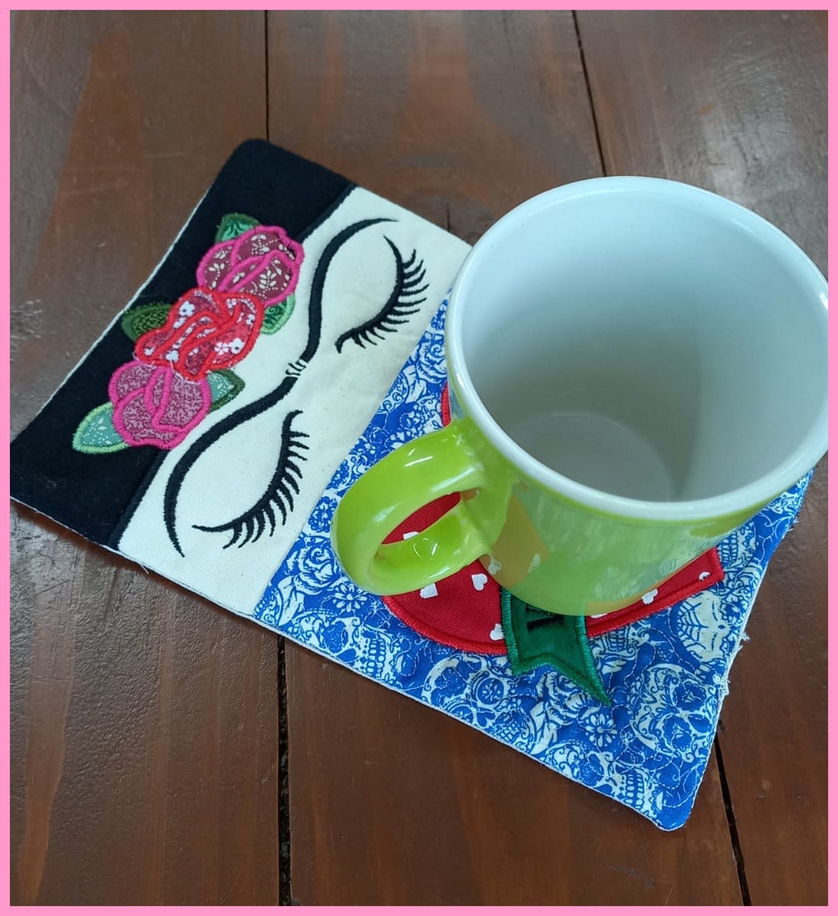 Frida Kahlo Mug Rug - ITH Project - Machine Embroidery Design