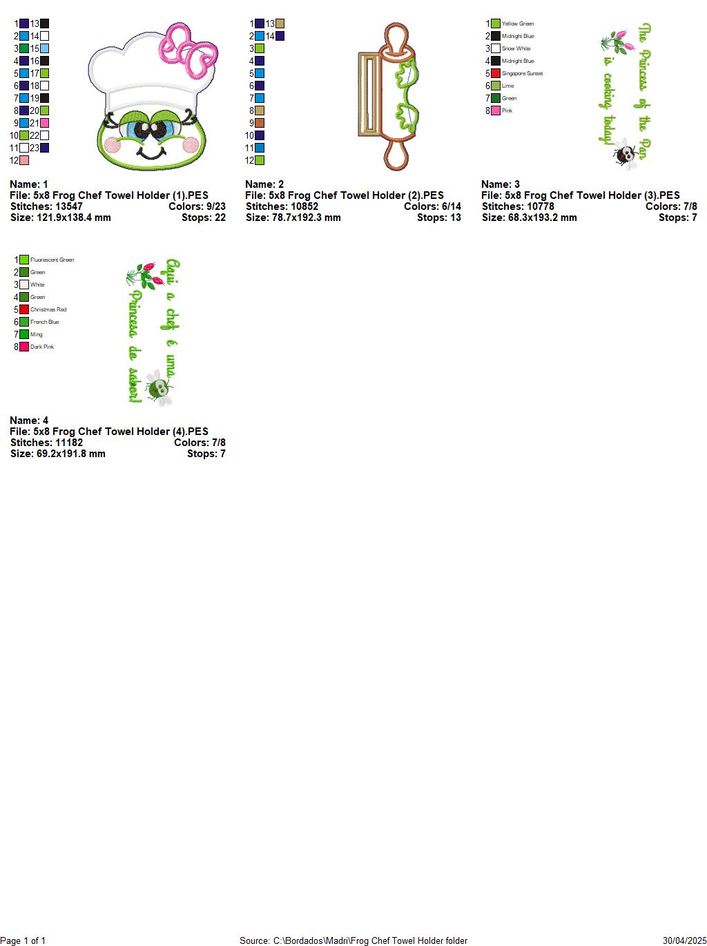Frog Chef Towel Holder - ITH Project - Machine Embroidery Design