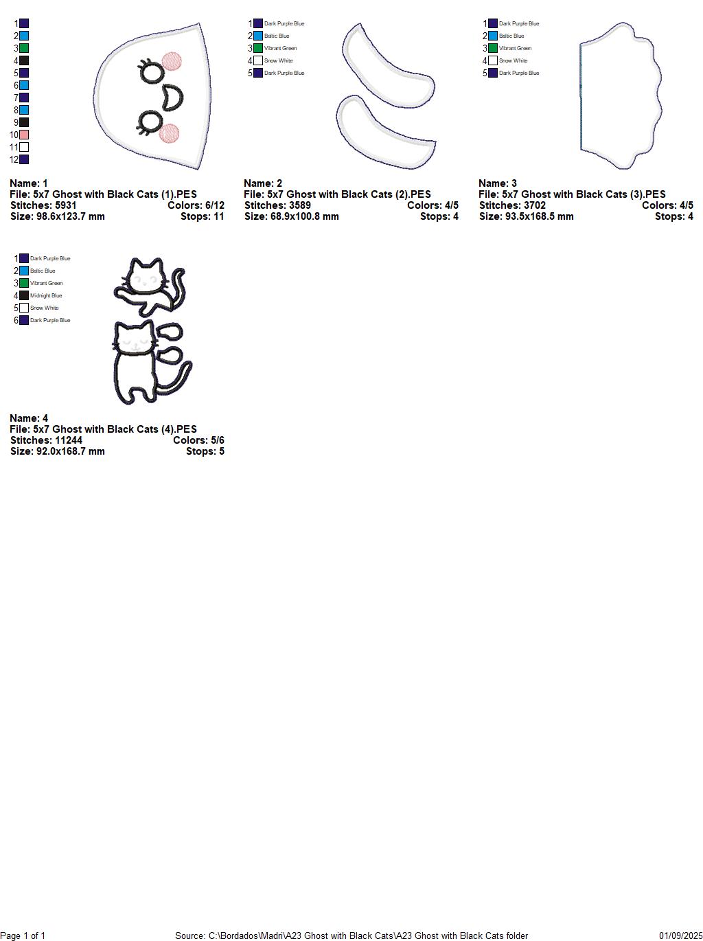 Ghost with Two Black Cats – ITH Project – Machine Embroidery Design