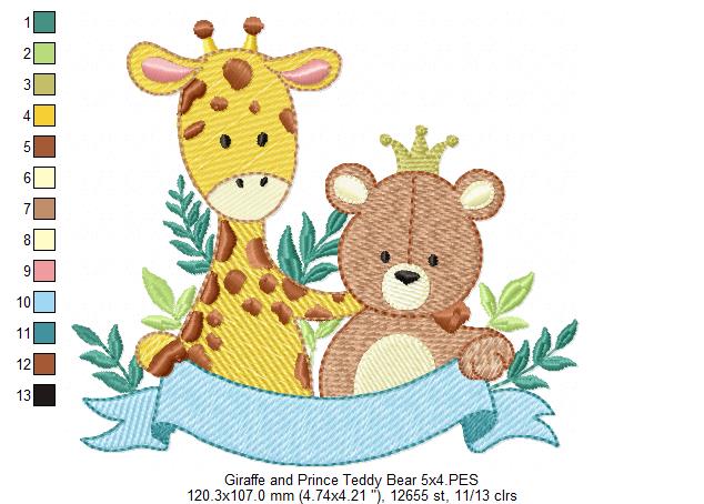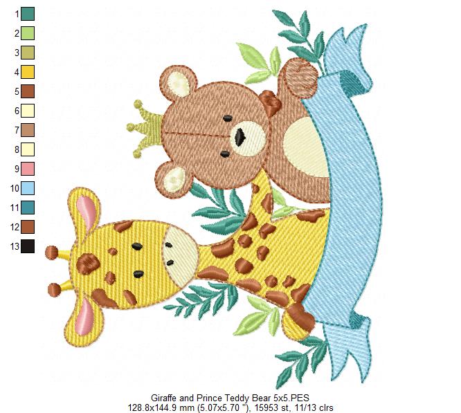 Discover our Giraffe and Prince Bear – Fill Stitch embroidery design. It's perfect for 4x4, 5x4, 5x5 and 6x6 machine embroidery hoops, and comes as an instant download. Enjoy a fun and creative experience with our easy-to-use design!